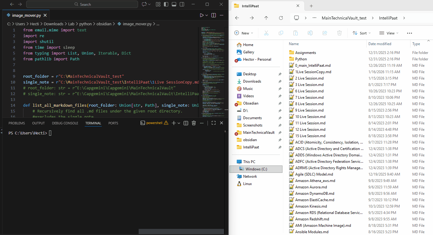 Obsidian vaults often start as flat structures: hundreds or thousands of .md notes and embedded images (.png, .jpg, etc.) all in one root folder. While Obsidian’s link syntax keeps everything connected beautifully during daily use, this becomes painful when you want to: